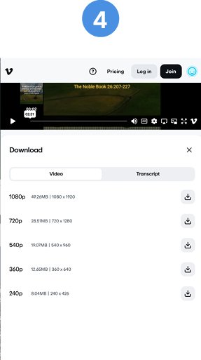 4. Tap the arrow next to the 1080p option to download the video.